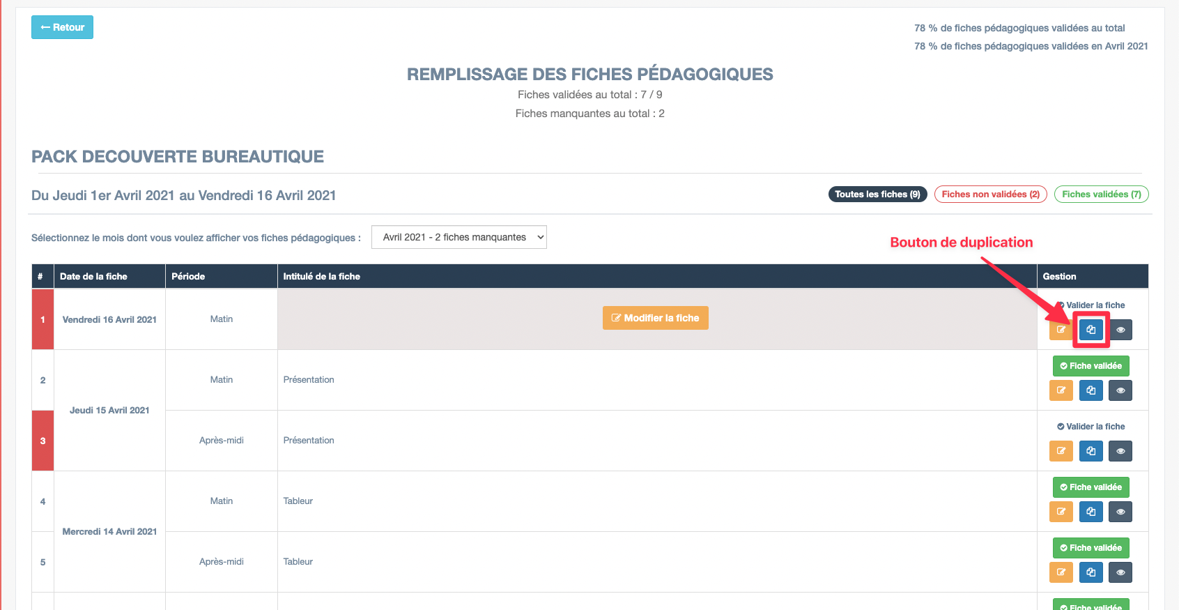 Afin de faciliter le remplissage des fiches concernant des modules se déroulant sur plusieurs jours,